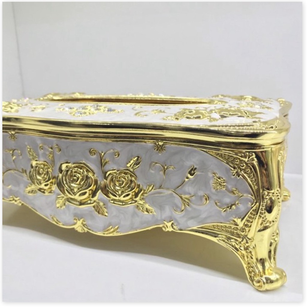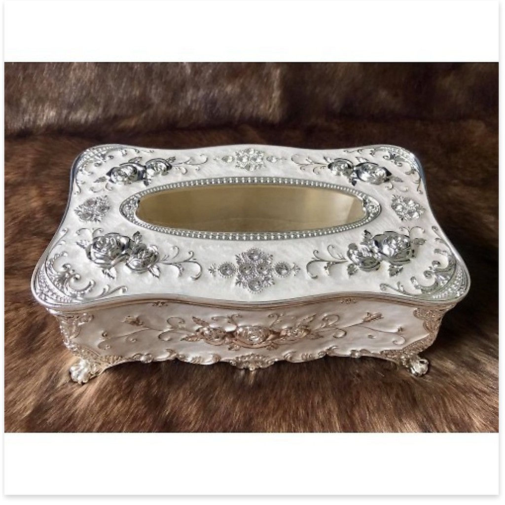 Hộp đựng giấy ăn hợp kim được trang trí hoa văn tinh xảoMang phong cách cổ điển Châu Âu