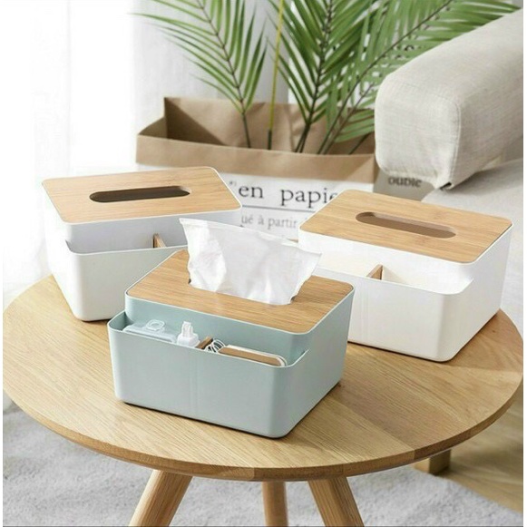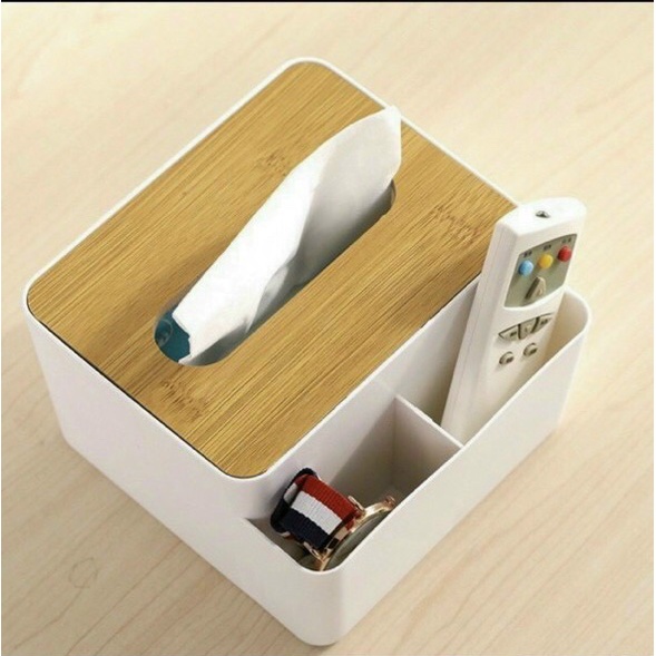 Nhà cửa & Đời sống > Sắp xếp nhà cửa > Hộp khăn giấy || Hộp đựng giấy ăn mặt gỗ tre có 2 ngăn để đồCòn hàng