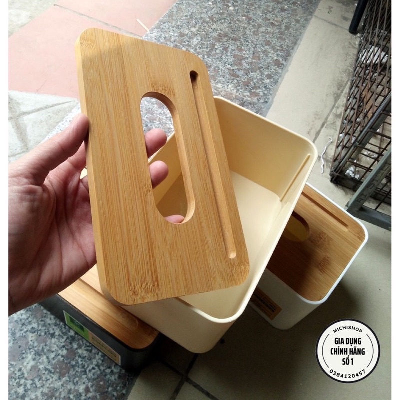 - Kiểu dáng hình chữ nhật thiết kế sang trọng với phân nắp hộp làm từ gỗ Tre ép cao cấp với màu nâu gỗ tự nhiên.