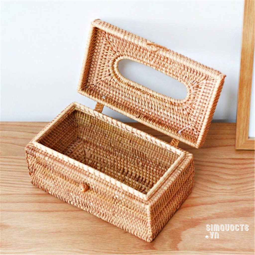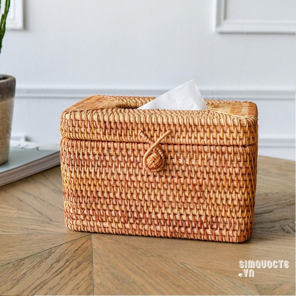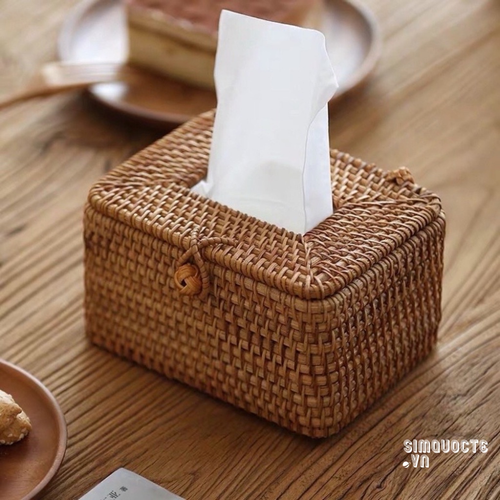 Hộp đựng giấy ăn mây tre đan thủ công decor trang trí không gian gia đình phong cách vintage
