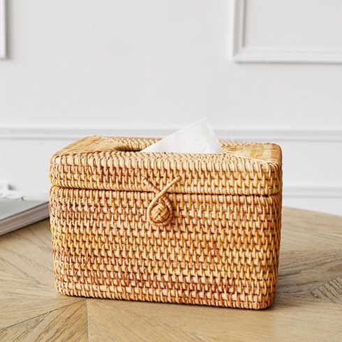 HỘP ĐỰNG GIẤY ĂN MÂY TRE ĐAN CAO CẤP BAMBOOO ECO THÂN THIỆN MÔI TRƯỜNG🎍 Hộp đựng giấy ăn mây cao cấp đan bằng sợi Guột (dương xỉ) - loài cây thuộc họ dương xỉ là một loại cỏ mọc hoang ở rừng nhiệt đới Việt Nam. Mùa khai thác trong khoảng tháng 9 âm lịch hàng năm nên số lượng rất khan hiếm. Nằm sâu trong các khu rừng nhiệt đới nước ta, Sợi guột mang lại một cảm giác mềm mịn, đàn hồi tốt, có kết cấu chắc chắn và bền. Nó là một món quà của thiên nhiên.