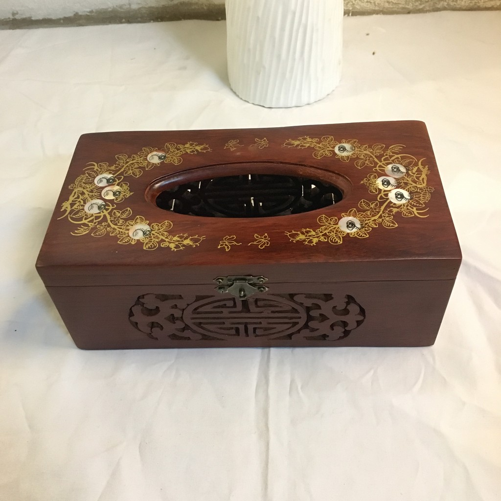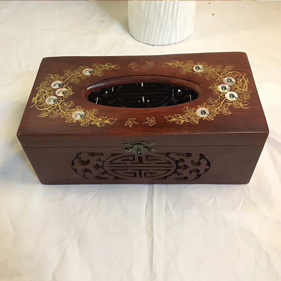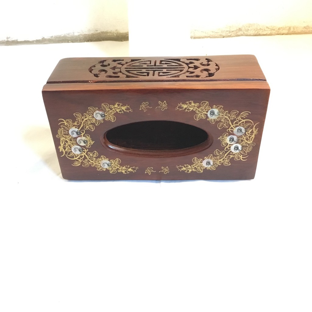 Thông tin sản phầm: hộp đựng giấy ăn khảm hoa văn, chạm chữ.