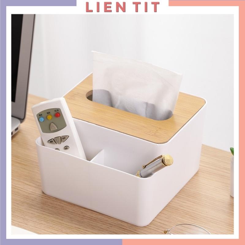 Hộp đựng giấy ăn nắp gỗ chia ngăn để đồ, hộp đựng khăn giấy rút tiện lợi