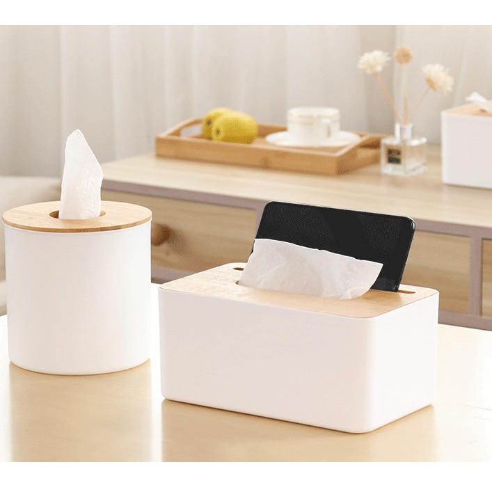 Hộp Đựng Giấy Ăn Nắp Vân Gỗ Kiêm Giá Để Điện Thoại Đa Năng Tiện lợi