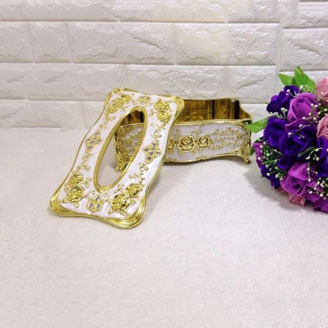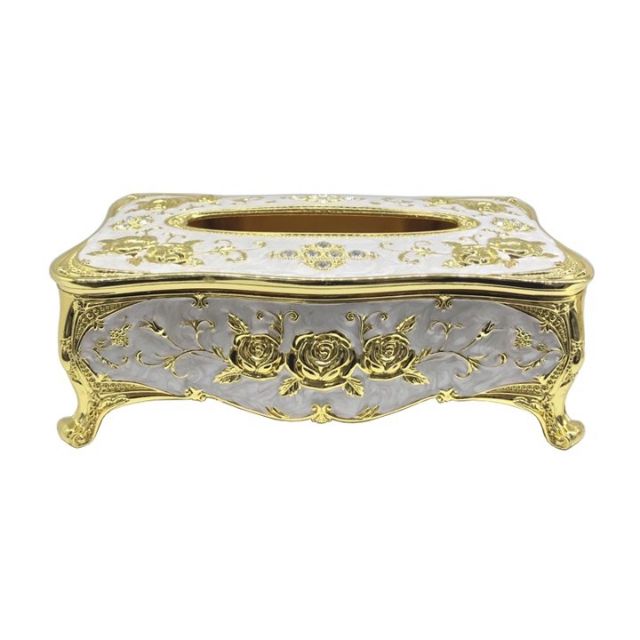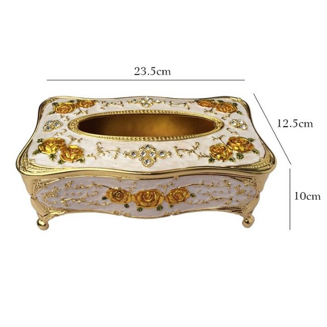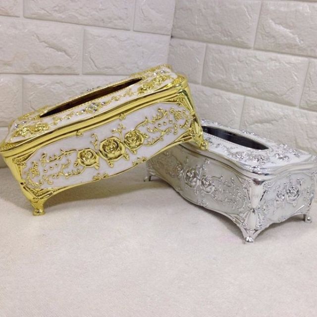 + Hộp đựng khăn giấy hoa văn cổ điển được trang trí hoa văn tinh xảo mang tính nghệ thuật cao mang phong cách cổ điển Châu Âu.