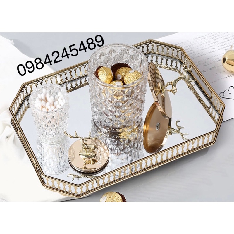 - Hộp được làm bằng chất liệu khung kim loại mạ màu vàng sáng bóng, đính các ô đá pha lê lấp lánh cực đẹp mắt và sang trọng.