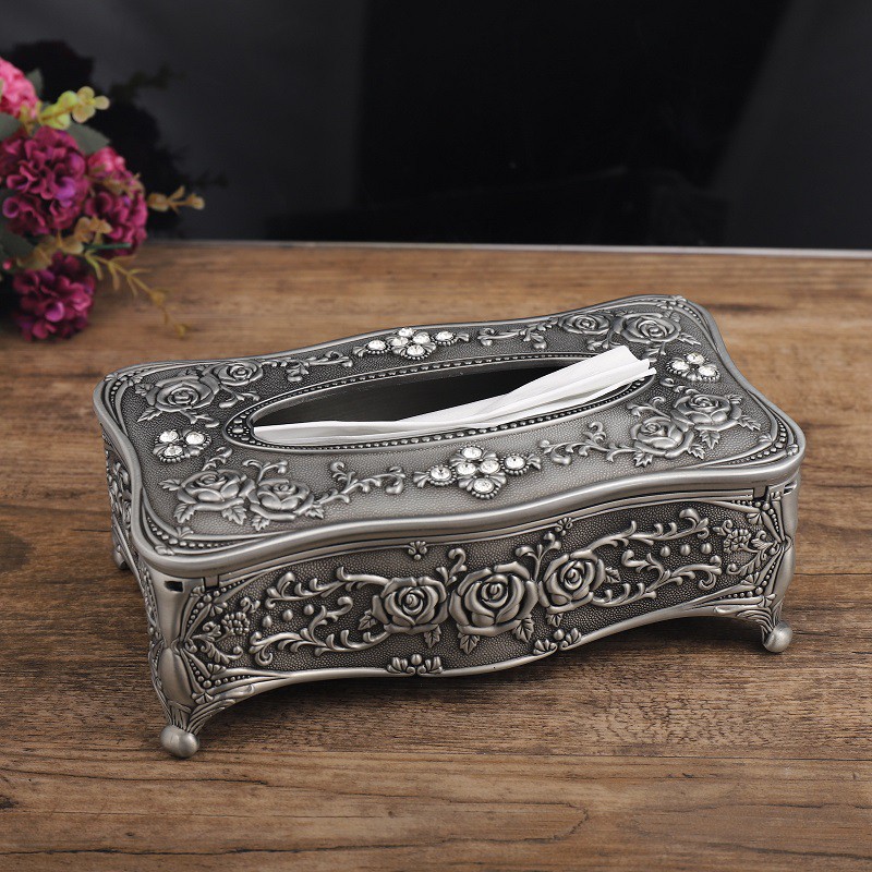 Hộp đựng giấy ăn sang trọng hợp kim phong cách hoàng gia nhiều màu sắc hoa văn tinh tế