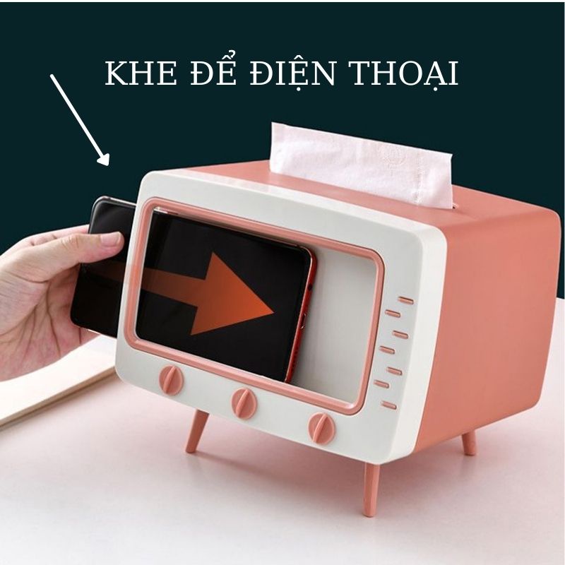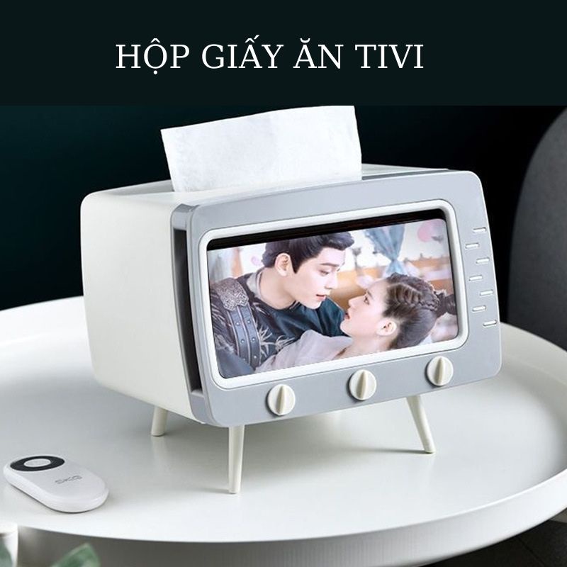 Hộp Đựng Giấy Ăn hình tivi hộp decor sang trọng có khe để điện thoại đa năng dễ thương