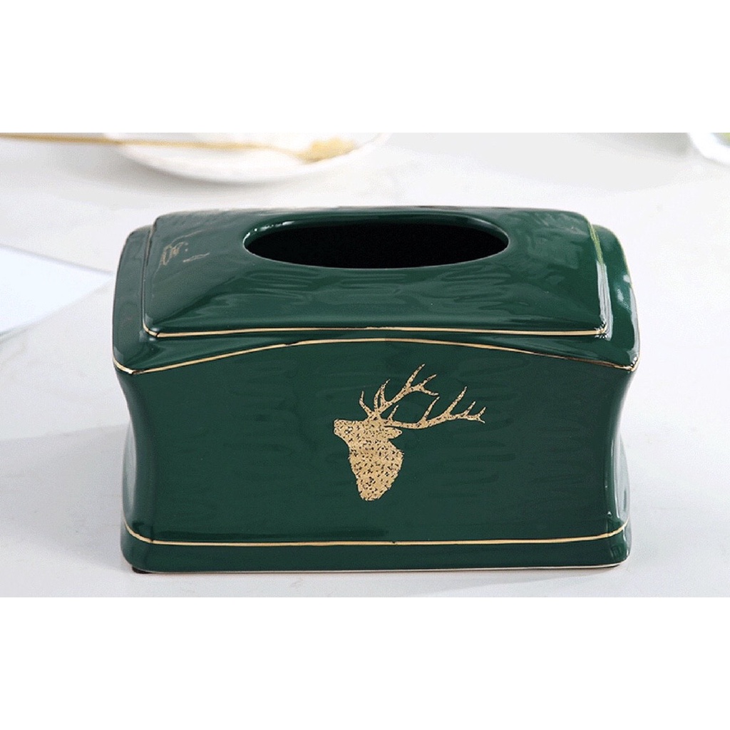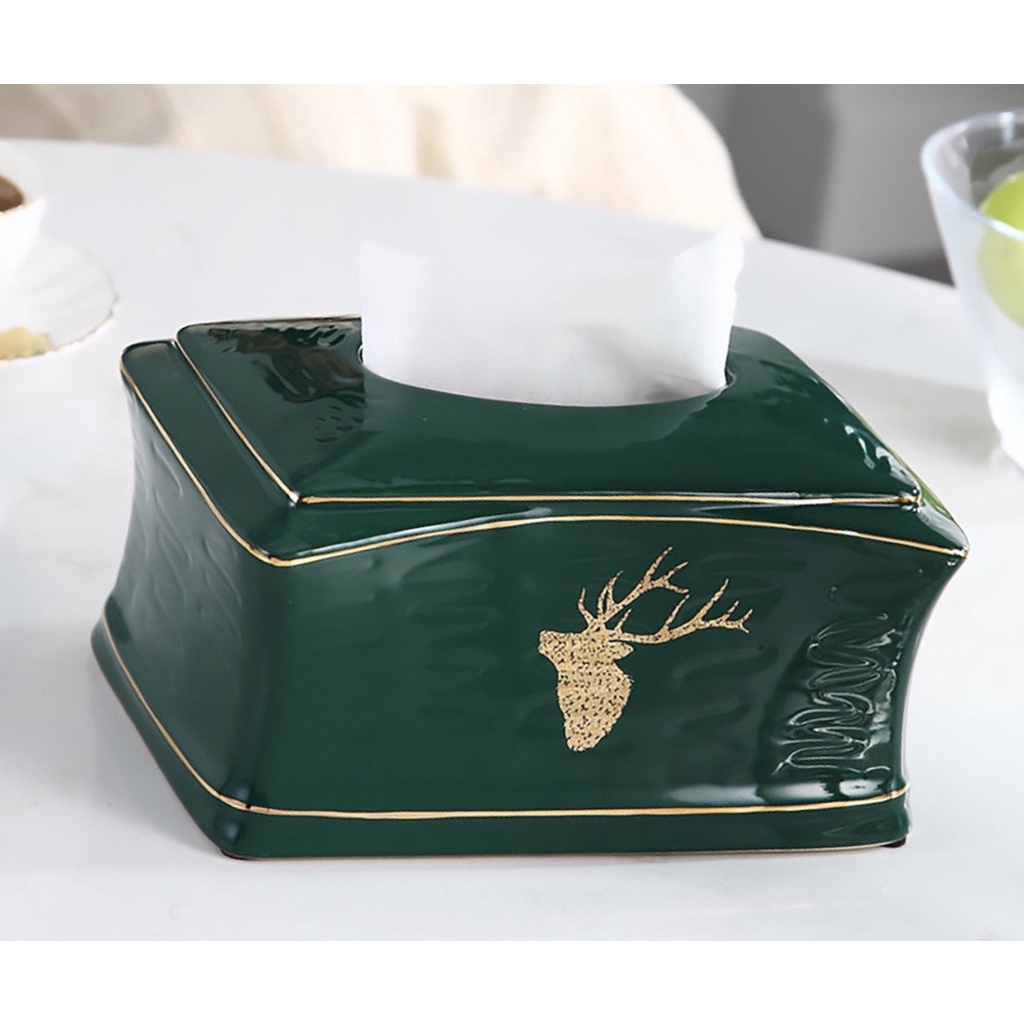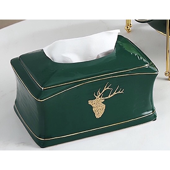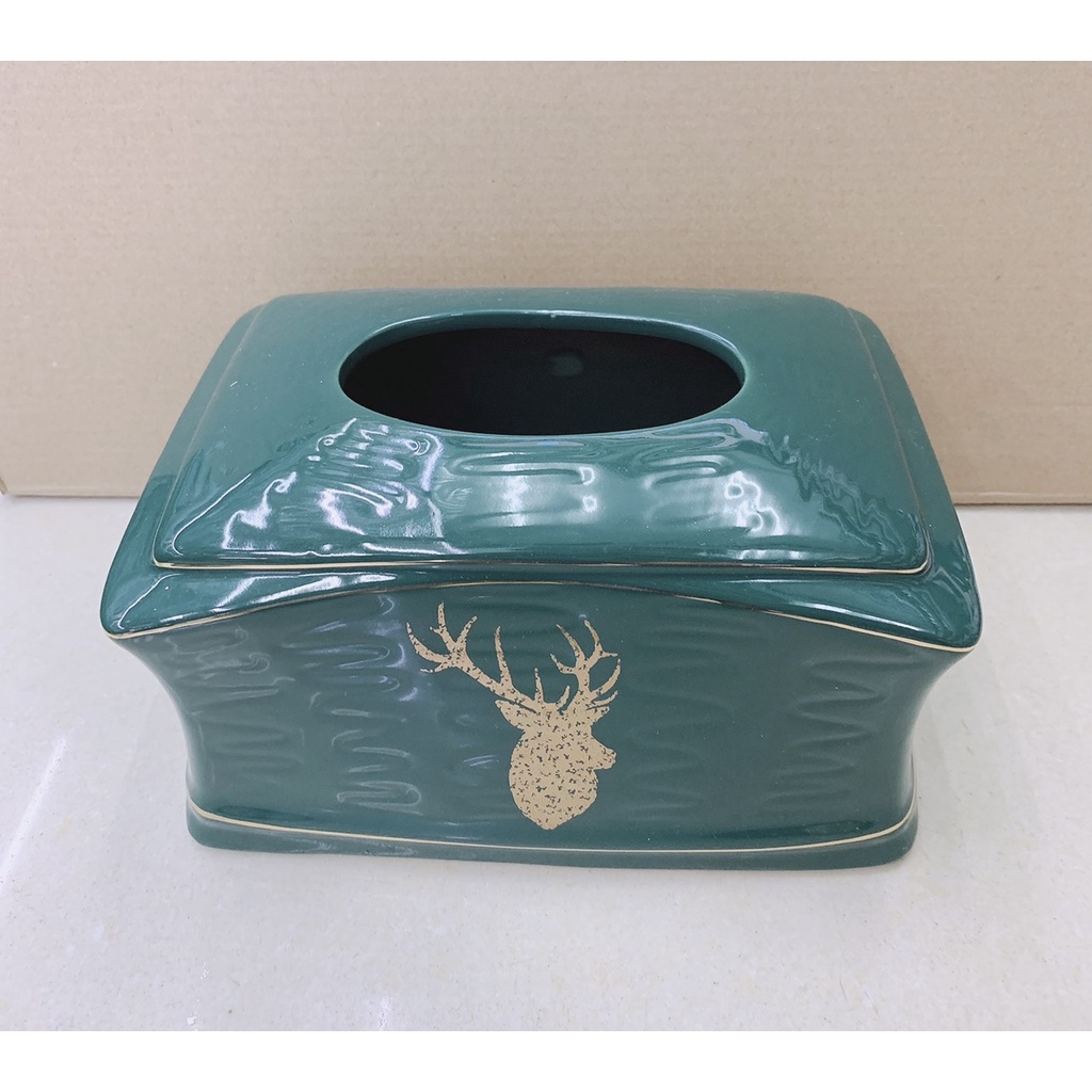 Nhà cửa & Đời sống > Sắp xếp nhà cửa > Hộp khăn giấy || HỘP ĐỰNG GIẤY ĂN SỨ CÁO CẤP MÀU XANH NGỌC HÌNH ĐẦU HƯƠU VÀNGCòn hàng