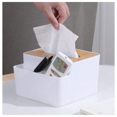 Nhà cửa & Đời sống > Sắp xếp nhà cửa > Hộp khăn giấy || Hộp đựng giấy ăn trắng nắp gỗ kiêm khay để đồ cao cấp đa năngCòn hàng