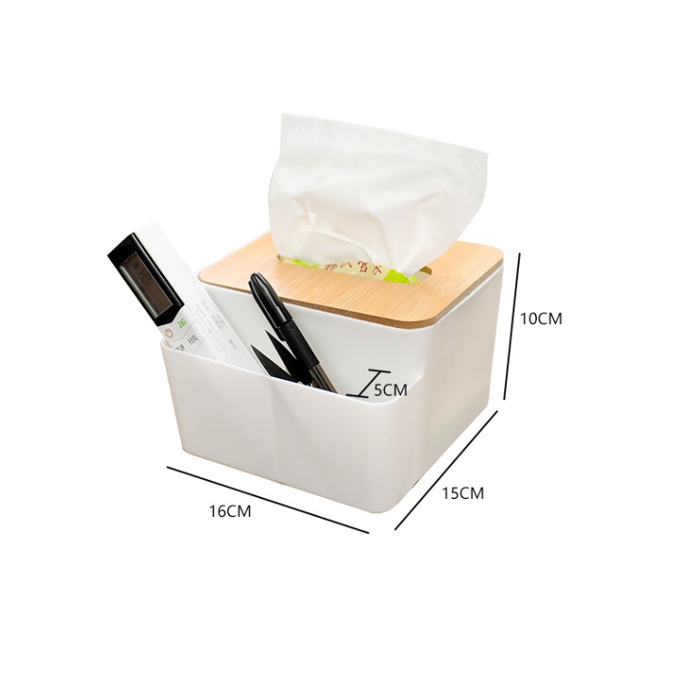 Hộp đựng giấy ăn trắng nắp gỗ cao cấp đa năng