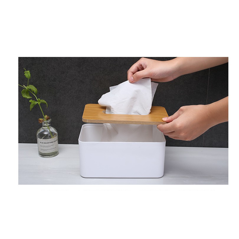 Nhà cửa & Đời sống > Sắp xếp nhà cửa > Hộp khăn giấy || Hộp đựng giấy ăn trắng nắp gỗ cao cấp đa năngCòn hàng