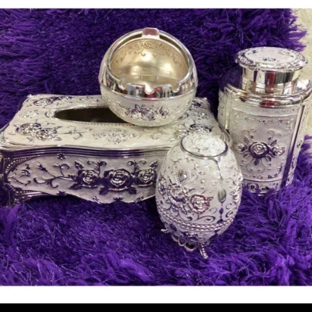 Giới thiệu Hộp đựng giấy ăn và lọ tăm,gạt tàn phong cách mạ Vàng, Bạc KIM LOẠI cao cấp phong cách hoàng gia