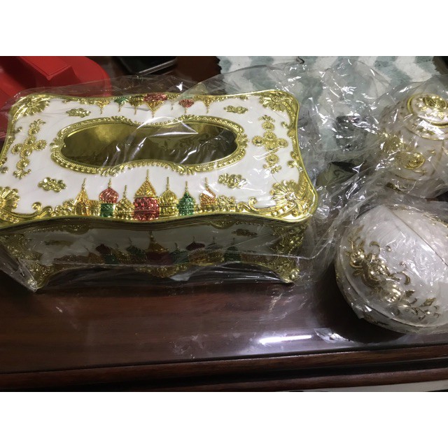 - Hộp đựng giấy ăn được trang trí hoa văn tinh xảo mang tính nghệ thuật cao mang phong cách cổ điển Châu Âu.