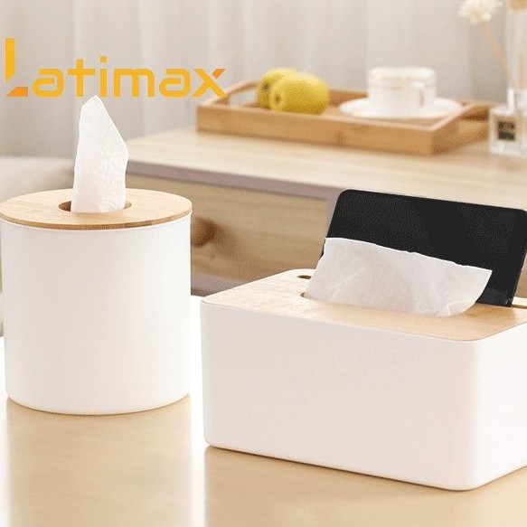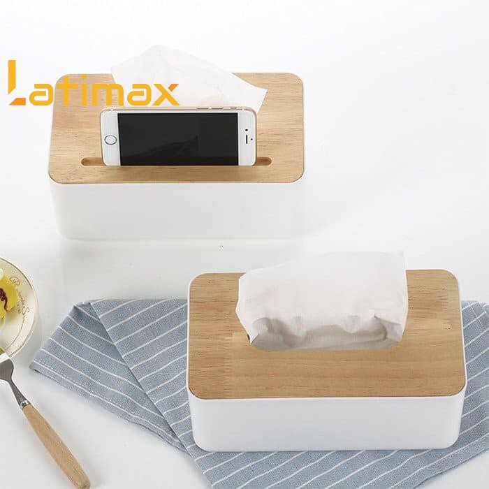 Giới thiệu Hộp đựng giấy ăn vân gỗ kèm giá để điện thoai hình chữ nhật Latimax