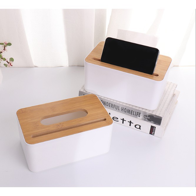 #Hộp_Đựng_Giấy_Mặt_Gỗ_Decor_T8_Có_2_Ngăn_Để_Đồ