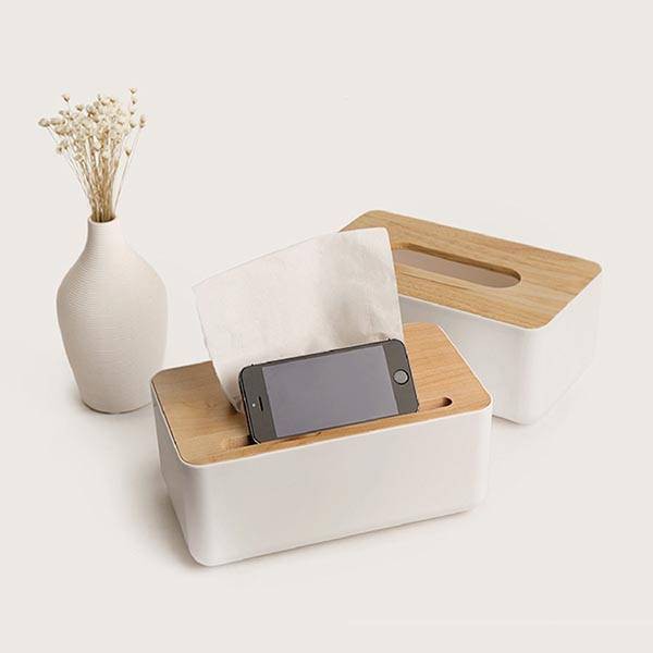Hộp đựng giấy ăn vân tre, có khe cài điện thoại thú vị