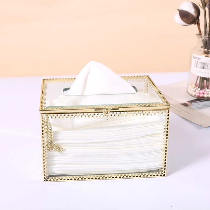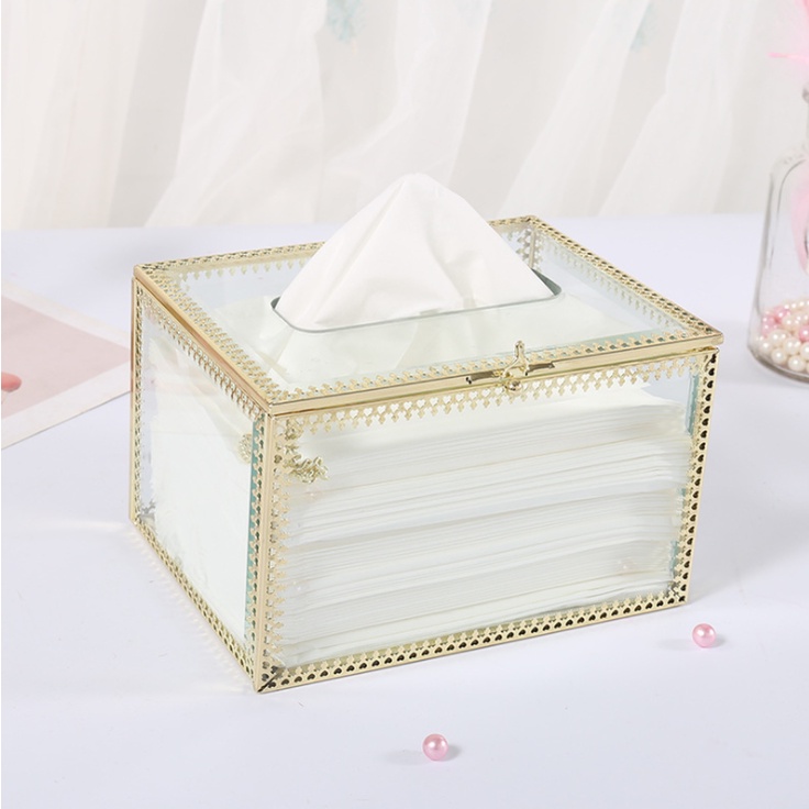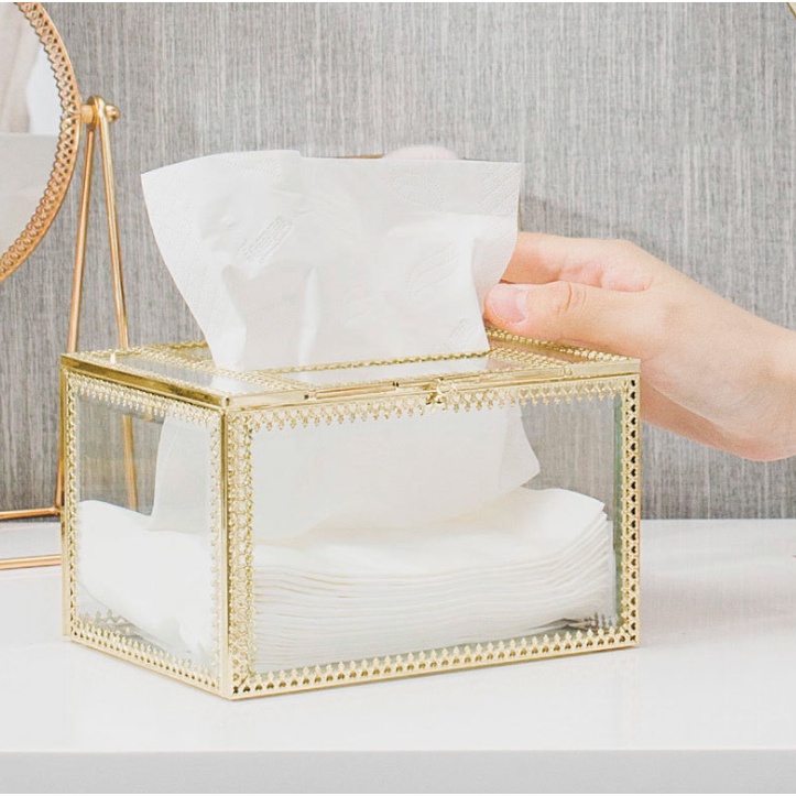 ***Thông tin sản phẩm:✔️ Tên sản phẩm: Hộp đựng giấy bằng thủy tinh trong suốt viền mạ vàng phong cách Bắc Âu sang trọng