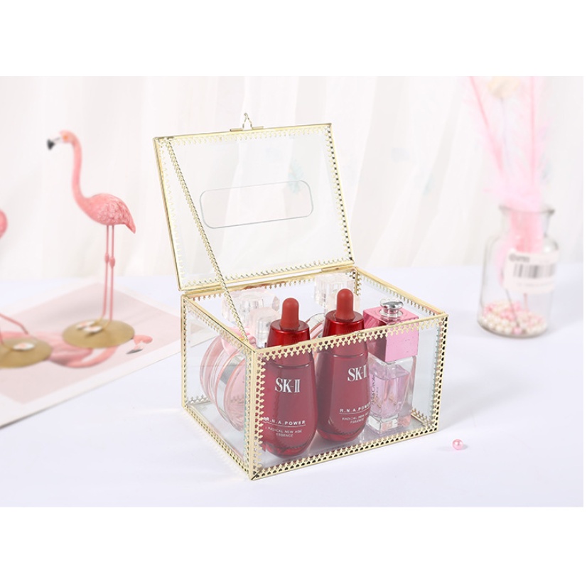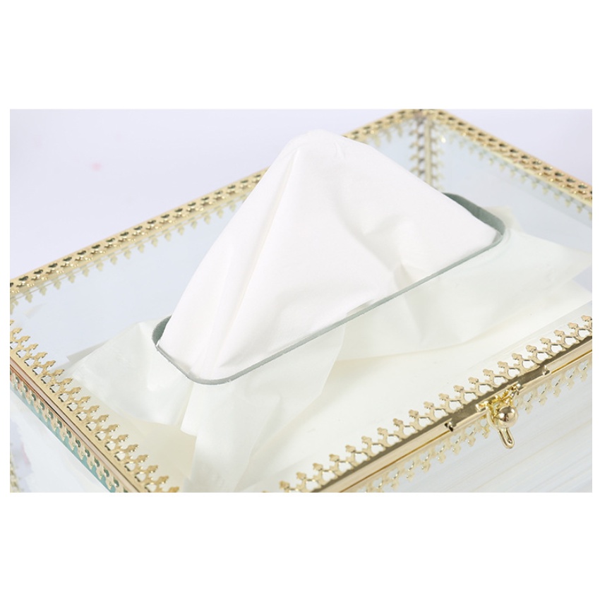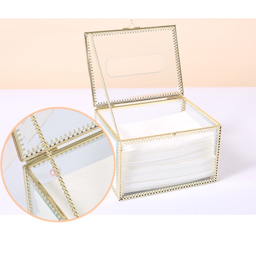 Hộp đựng giấy bằng thủy tinh trong suốt viền mạ vàng phong cách Bắc Âu sang trọng hàng có sẵn