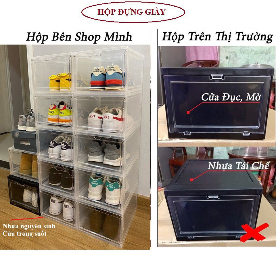 Hộp Đựng Giày Cao Cấp - Nhựa Xịn Cứng Nắp Nam Châm Trong Suốt Lắp Ghép Thông Minh -Tặng Hút Ẩm
