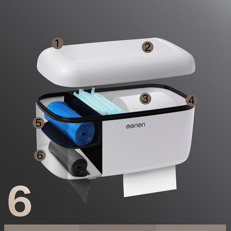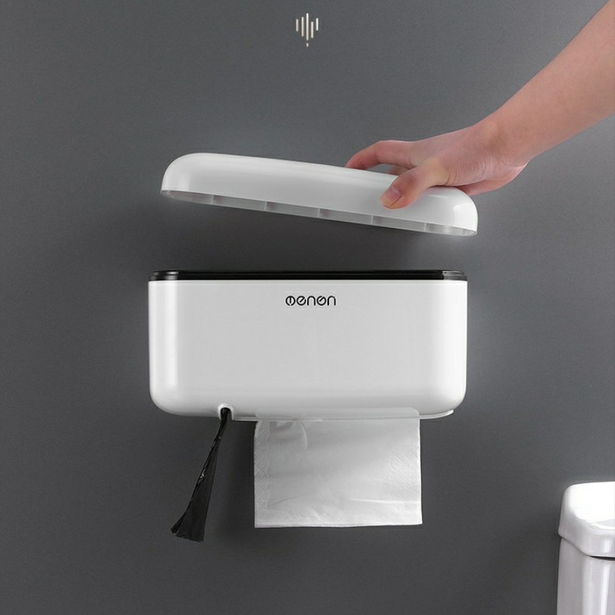 Hộp đựng giấy vệ sinh kín có nắp giữ cho cuộn giấy luôn khô ráo, tránh nước hoặc bám bụi.