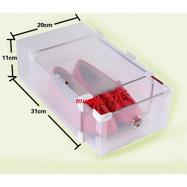 - Hộp đựng giày trong suốt tiện dụng cho bạn cất gọn gàng giày dép một cách ngăn nắp và có khoa học.