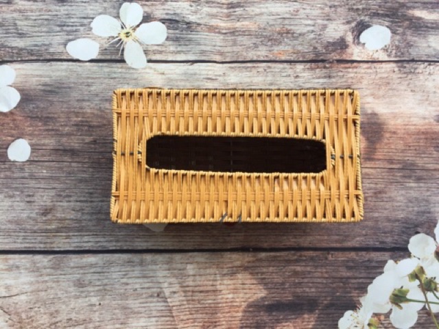 Hộp đựng giấy chữ nhật giả mây. Hàng sản xuất tại vn nha mn. Xưởng nhà e làm nên mn yên tâm về chất lượng ạ ~ hộp giấy cho giấy chữ nhật là vừa chuẩn luônKích thước sản phẩm: 24*12*10