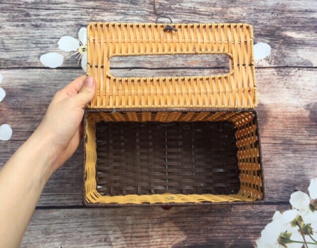 Hộp đựng giấy chữ nhật giả mây. Hàng sản xuất tại vn nha mn. Xưởng nhà e làm nên mn yên tâm về chất lượng ạ ~ hộp giấy cho giấy chữ nhật là vừa chuẩn luônKích thước sản phẩm: 24*12*10