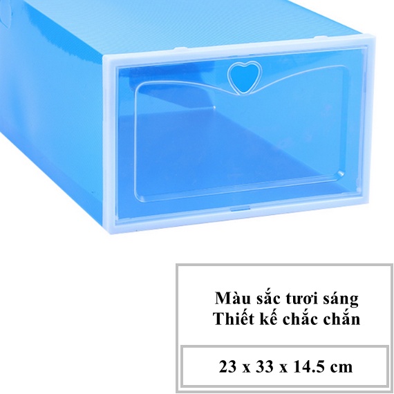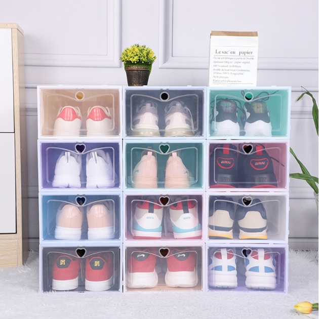 ** Không còn phải lo lắng về tình trạng để giày dép bừa bộn, mất thẩm mĩ vì đã có Hộp Đựng Giày Đa Năng Nắp Nhựa Cứng Hộp Nhiều Màu Sắc Dễ Thương.** Màu sắc tươi sáng tươi tắn không phai màu theo thời gian.