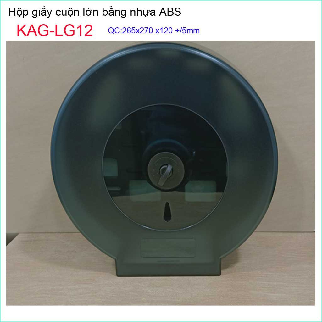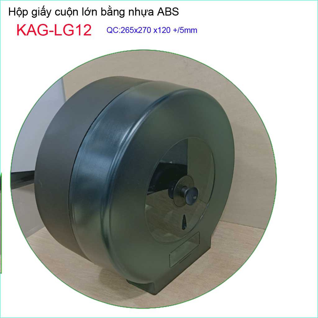 Hộp đựng giấy cuộn lớn KAG-LG12 màu đen, hộp giấy vệ sinh Roto nhựa đen sử dụng tốt không lo gỉ sécKích thước dài 265mmx cao rộng 270mm x cao 120 mm