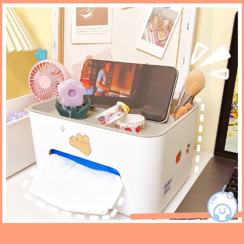 Hộp đựng giấy đa năng có khai đựng đồi, giá đỡ điện thoại tiện dụng gọn gàng, để ở phòng khách, ngủ, bàn làm việc