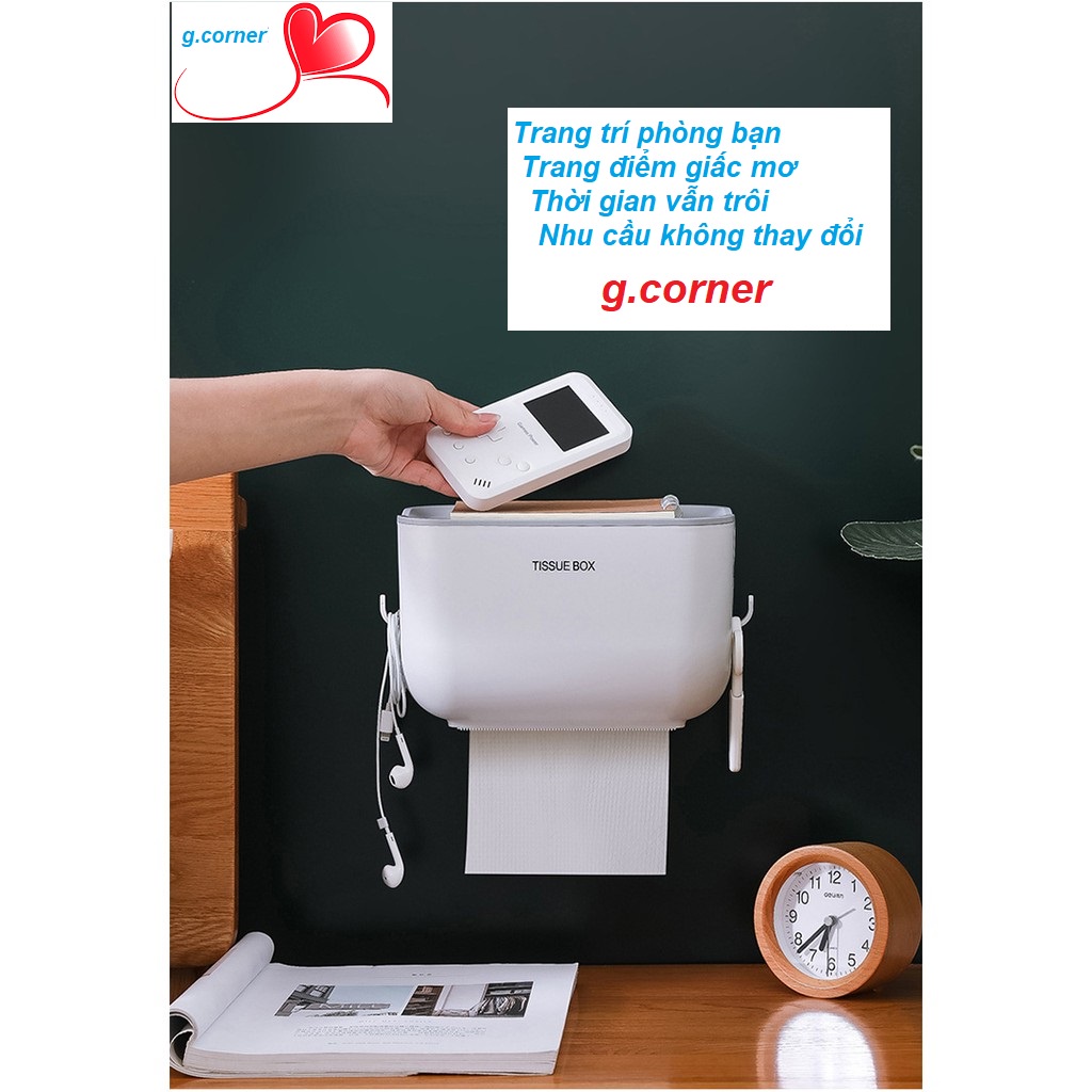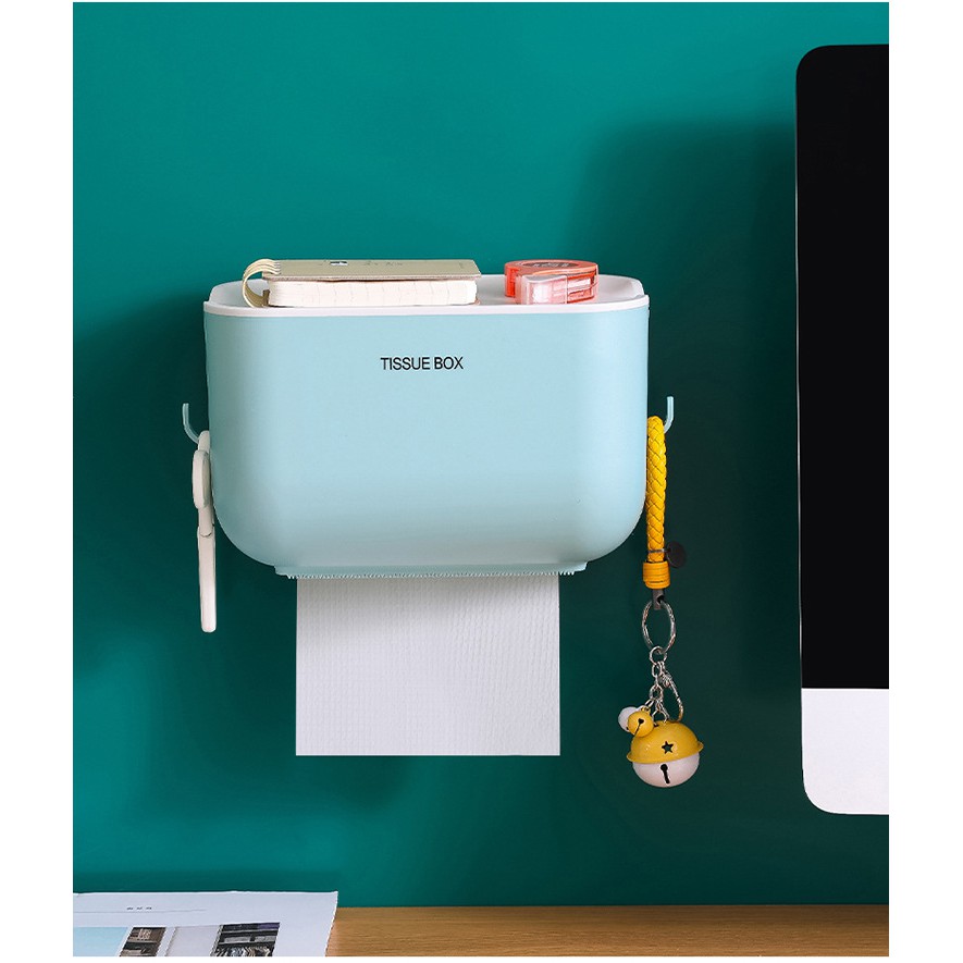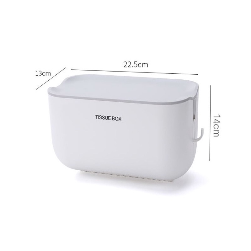 - Sản phẩm gồm: Hộp đựng giấy và miếng keo dán tường