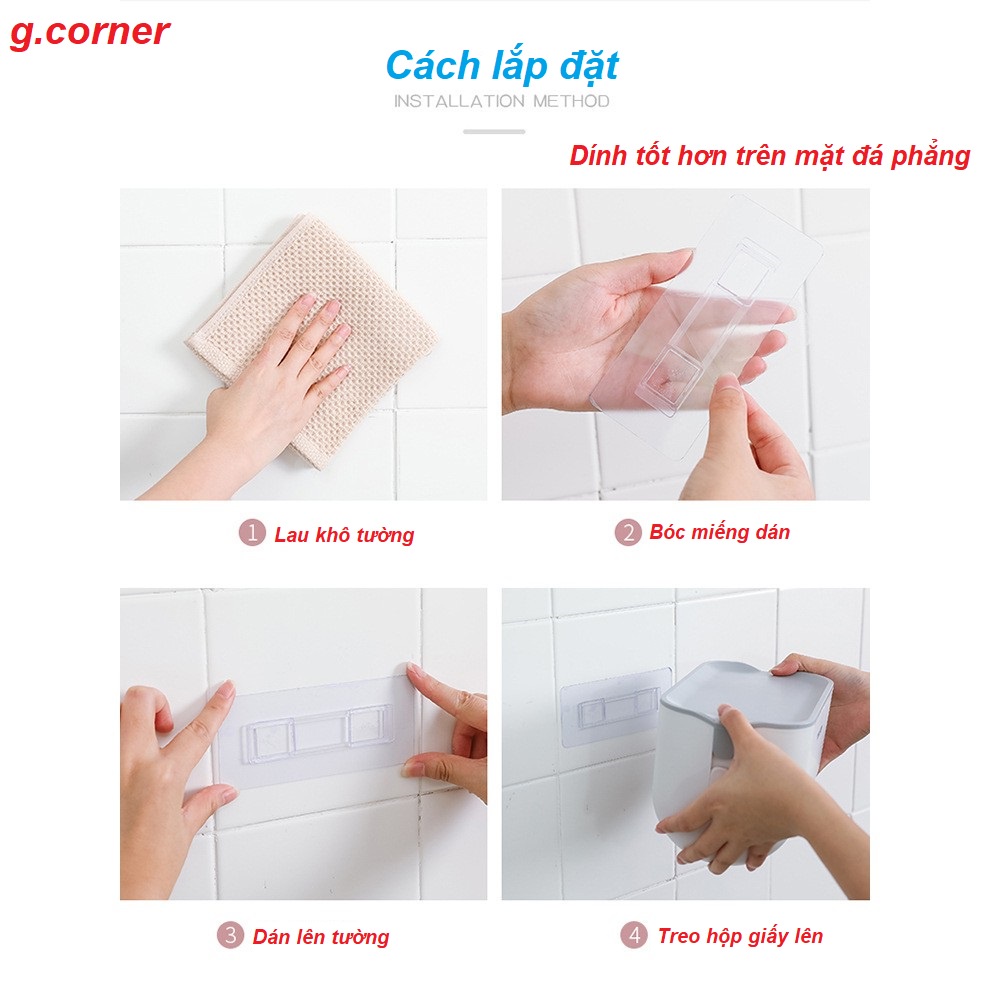 - Giữ cho cuộn giấy luôn khô ráo, sạch sẽ Sử dụng công nghệ hút chân không hiện đại hút siêu dính, không cần khoan vít.