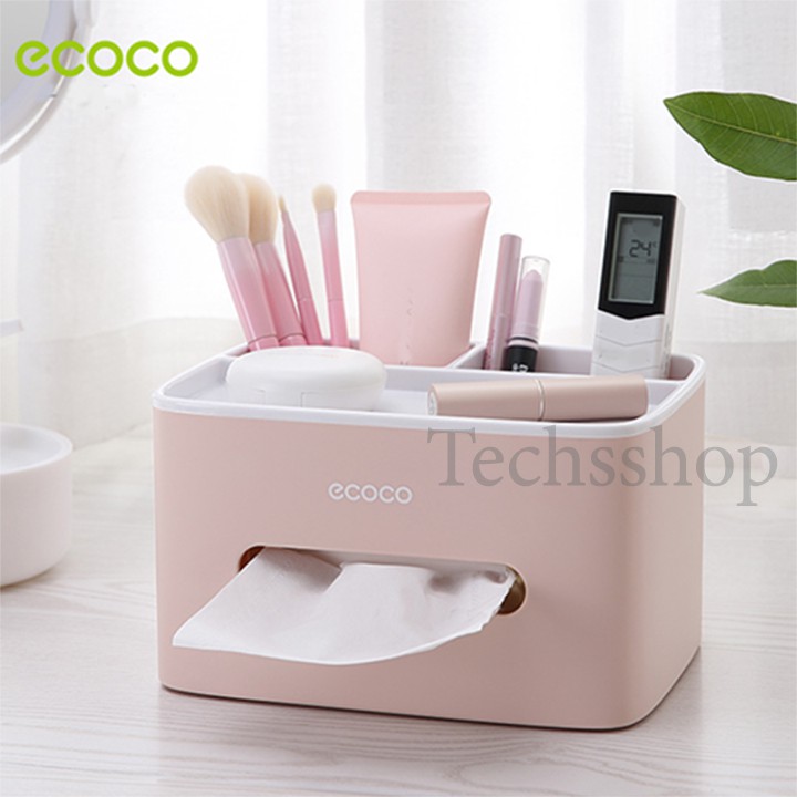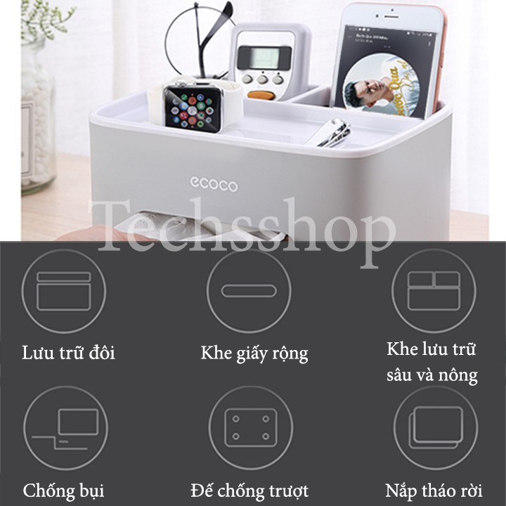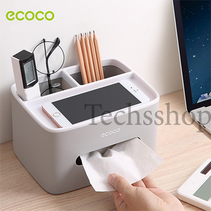 Hộp đựng giấy ăn để bàn ecoco e1602 có chia ngăn và khe để điện thoại tiện nghi