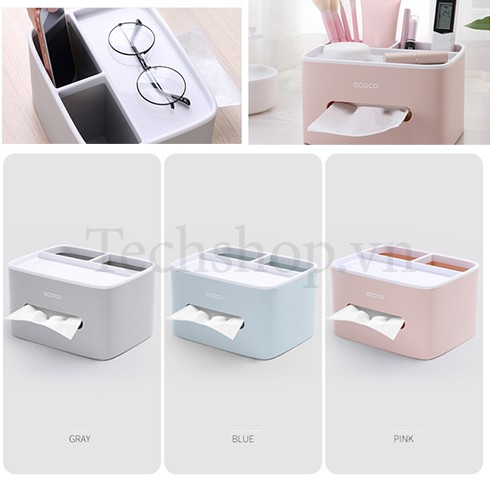 Giới thiệu Hộp đựng giấy ăn để bàn ecoco e1602 có chia ngăn và khe để điện thoại tiện nghi