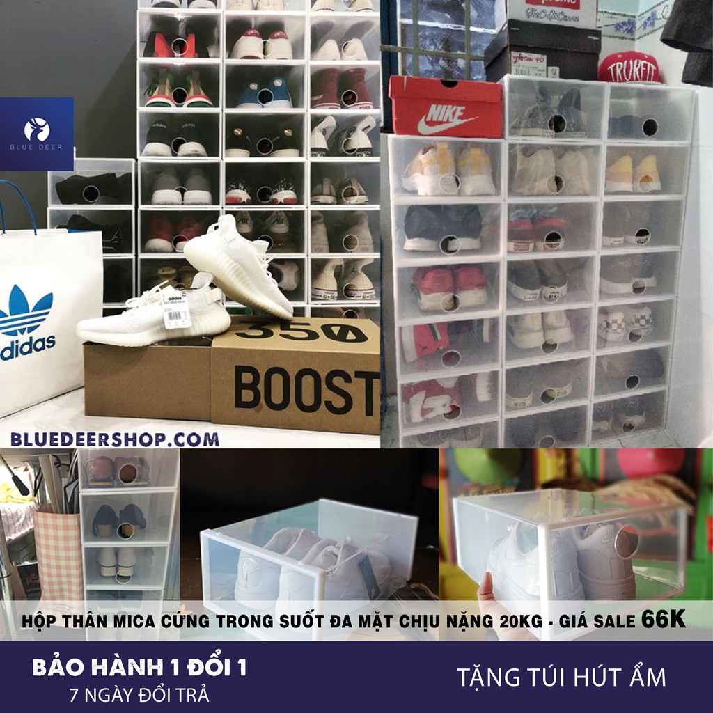 Hộp đựng giày dép mica trong suốt siêu cứng cáp - Chịu Nặng 20KG - Tặng Túi Hút Ẩm - Blue DeerNhận ngay mã giảm 30K phí ship - vào giỏ hàng tìm mục mã của tôi chọn mã miễn phí vận chuyển ^^
