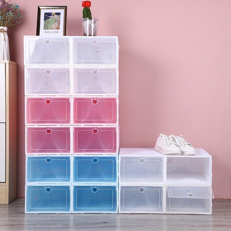 Hộp Đựng Giày Dép Nắp Nhựa Cứng Trong Suốt, Size Lớn Chịu Lực 4KG, Lắp Ráp Dễ Dàng