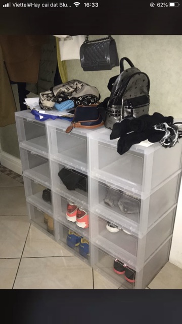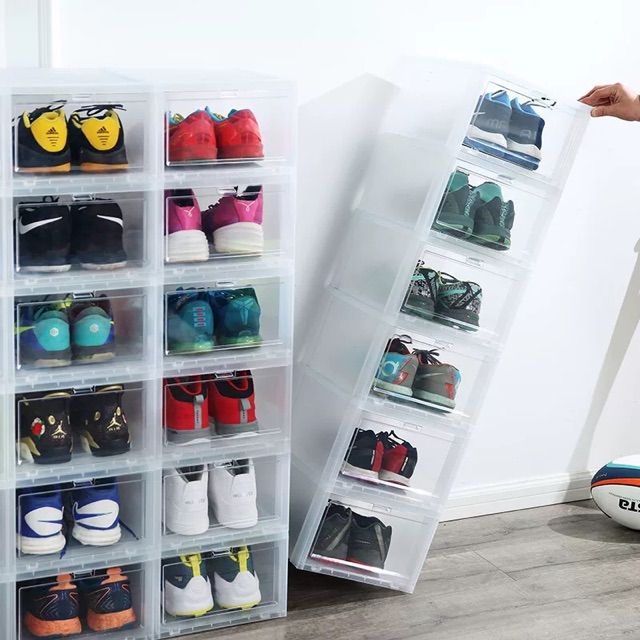 Hộp đựng giày dép nhựa cứng đúc nguyên hộp big Size: làm kệ đựng Mỹ phẩm, kệ tủ mini, hộp chia đồ