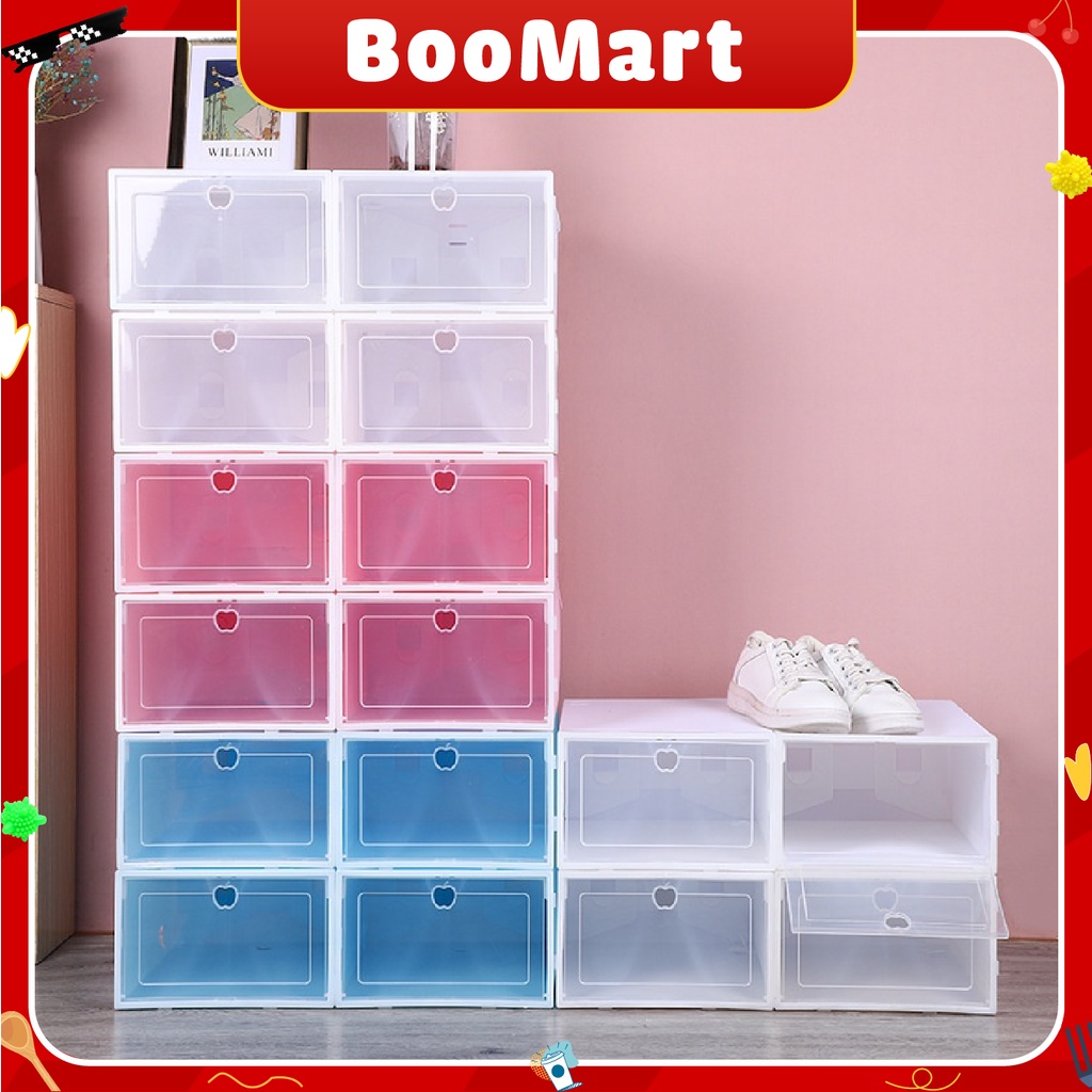 Hộp đựng giày dép nhựa cứng, trong suốt, size lớn chịu lực tốt giữ sạch giày dép trong gia đình-BooMart