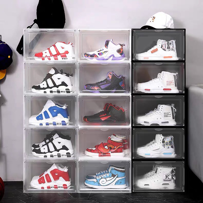 Thông tin sản phẩm : Hộp đựng giày nhựa cứng cao cấp size lớn có nắp nhựa cứng nam châm trong suốt lắp ráp tiện lợi