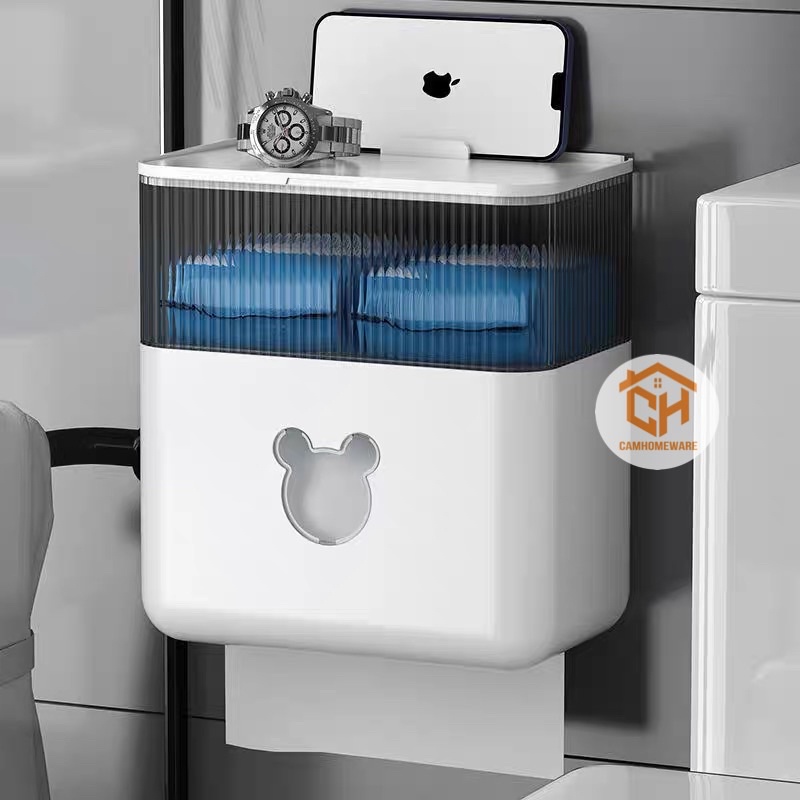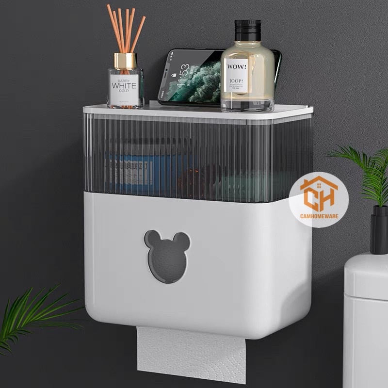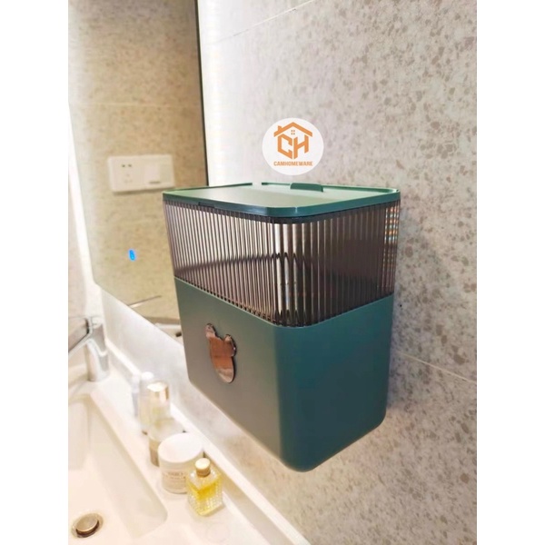 - Hộp đựng giấy vệ sinh kín có nắp giữ cho cuộn giấy luôn khô ráo, tránh nước hoặc bám bụi.