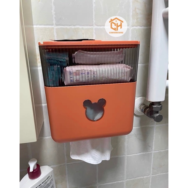 Hộp Đựng Giấy Gấu Đa Năng 6631, Hộp Đựng Giấy Vệ Sinh Dán Tường Cao Cấp Cam Homeware