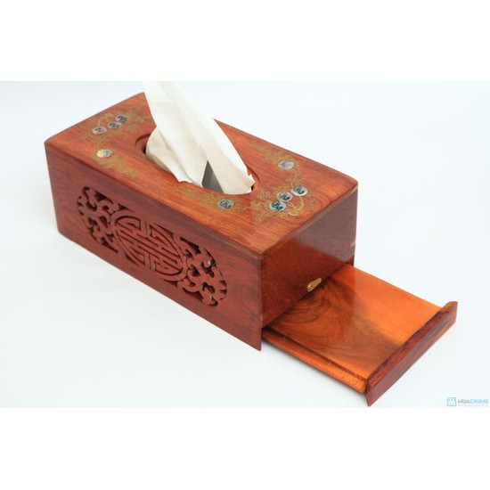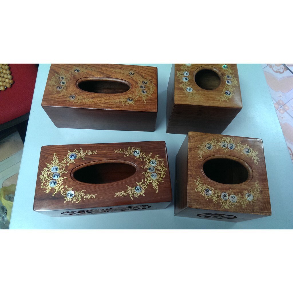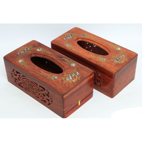 Hộp giấy Gỗ Hương rất thơm, khảm và sơn mài sang trọngNắp dạng kéo rút bên dưới hoặc mở kiểu bản lề