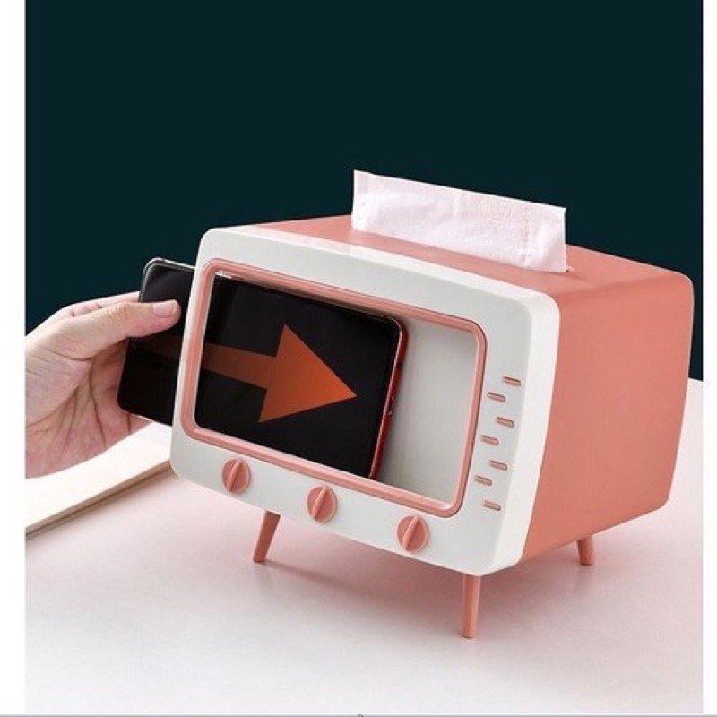 - Hàng mẫu mới 2020, thiết kế đẹp độc lạ hình dáng như chiếc tivi ngày xưa. Hộp đựng khăn giấy tivi, kê để điện thoại 2in1