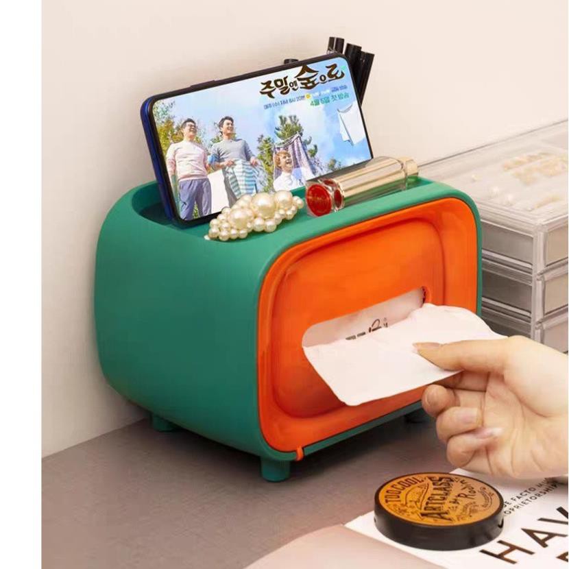 Hộp đựng khăn giấy hình ti vi dễ thươngHộp đựng khăn giấy tích hợp đa năng vừa để các loại khăn giấy vừa để điện thoại