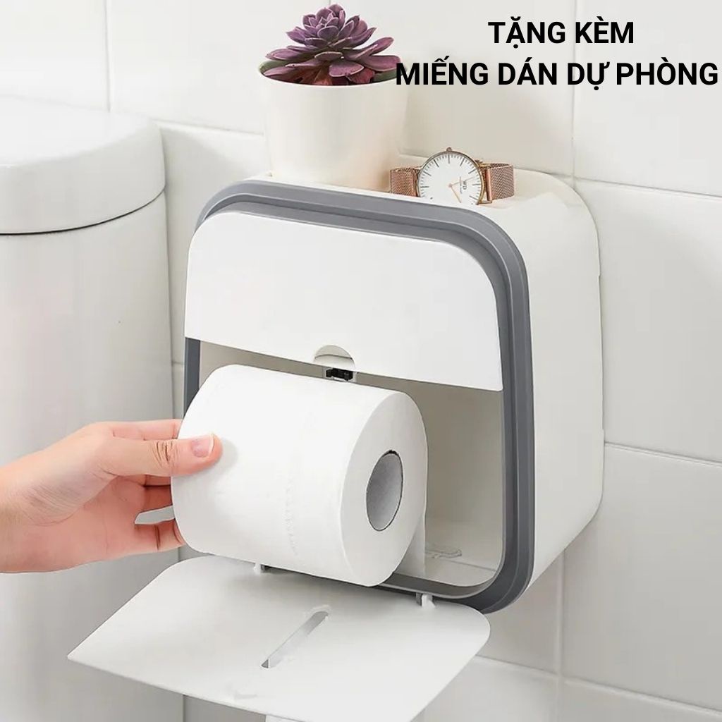 Hộp Đựng Giấy, Kệ dán tường, Hộp đựng giấy vệ sinh cao cấp 2 tầng chống nước, tiện dụng ( tặng kèm miếng dán tường)