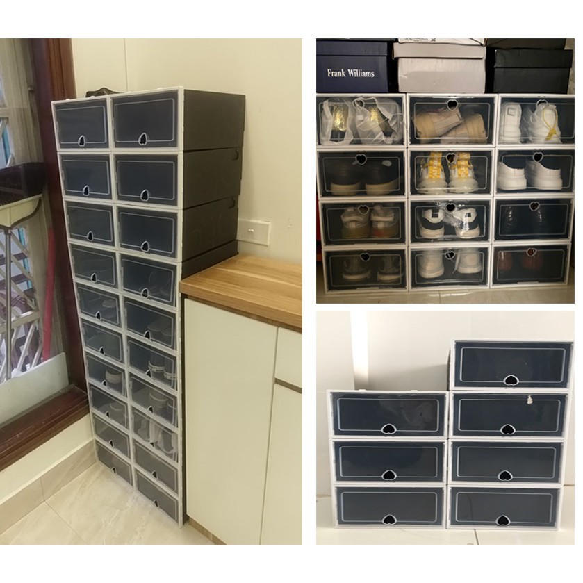 Thông Tin Sản Phẩm : Hộp Đựng Giày Nắp Nhựa Cứng Màu Đen Và TrắngĐẶC ĐIỂM NỔI BẬT