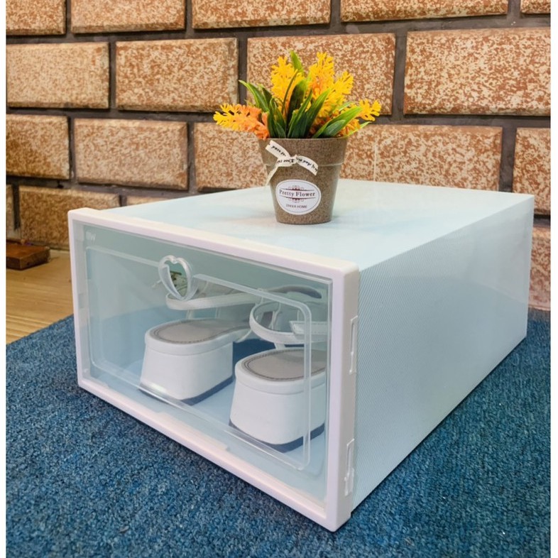 Thông Tin Sản Phẩm Hộp Đựng Giày Nắp Nhưa Cứng Trong SuốtKích Thước : + Mẫu hộp nắp ngang : 35 x 23.5 x 14 phù hợp size giày Nam Nữ 44 trở xuống