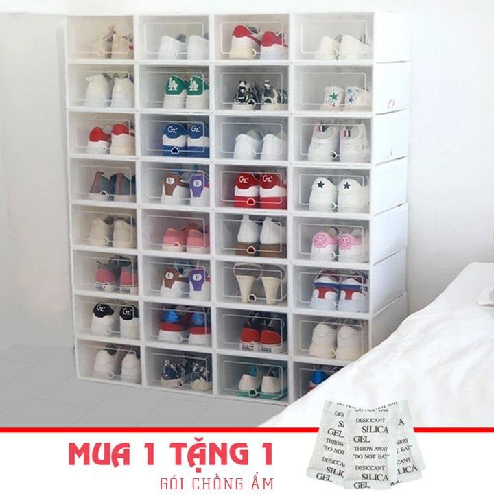 Hộp đựng giày nắp nhựa cứng trong suốt - Ảnh thật chịu lực 4kgHàng Có Sẵn - Tặng them túi hút ẩm theo số lượng hộp đã đặt