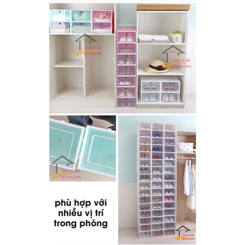 hộp đựng giày nắp trong suốt, hộp giày nhựa thông minh có thể xếp tầng giữ sạch giày dép, gọn gàng kho sỉ mb